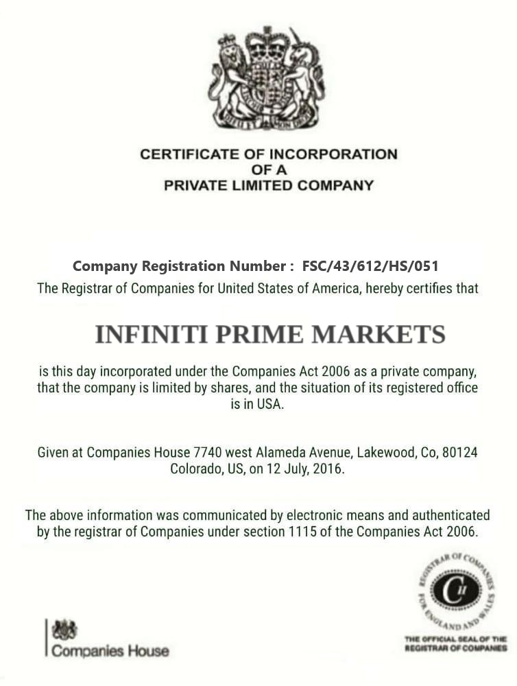 Infiniti Prime Markets Limited is authorized and regulated by the Cyprus Securities and Exchange Commission (CySEC) under license number 000/00. Registered address: Spyrou Kyprianou 61, Office 101, 6051 Larnaca, Cyprus.